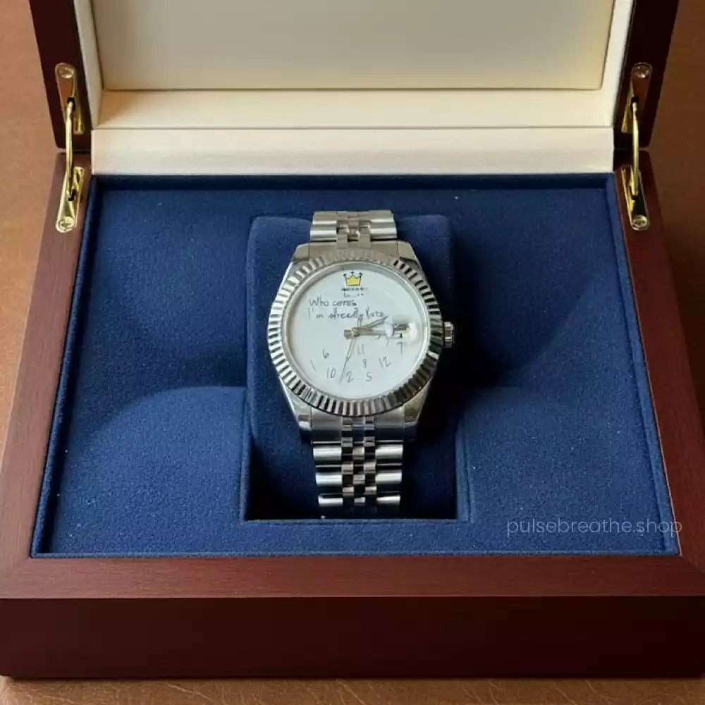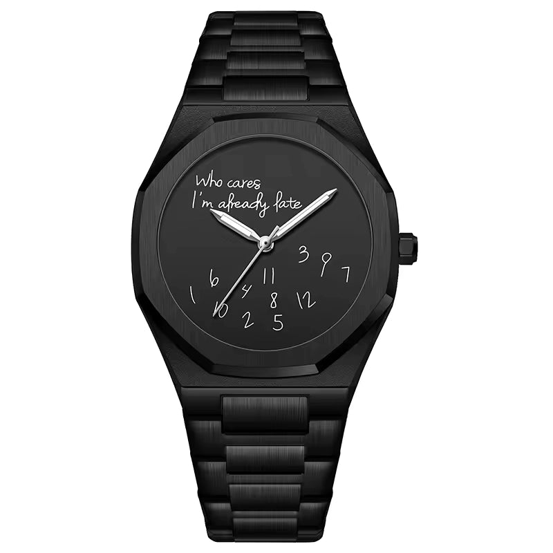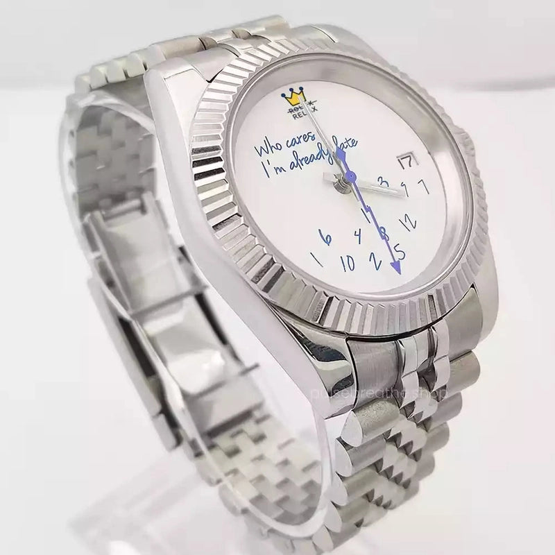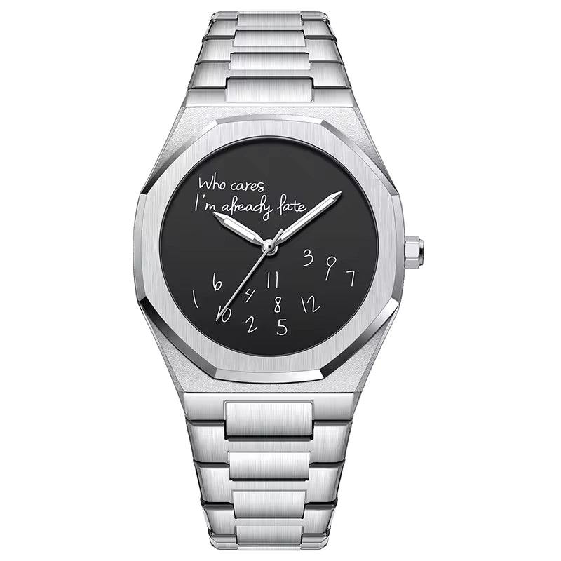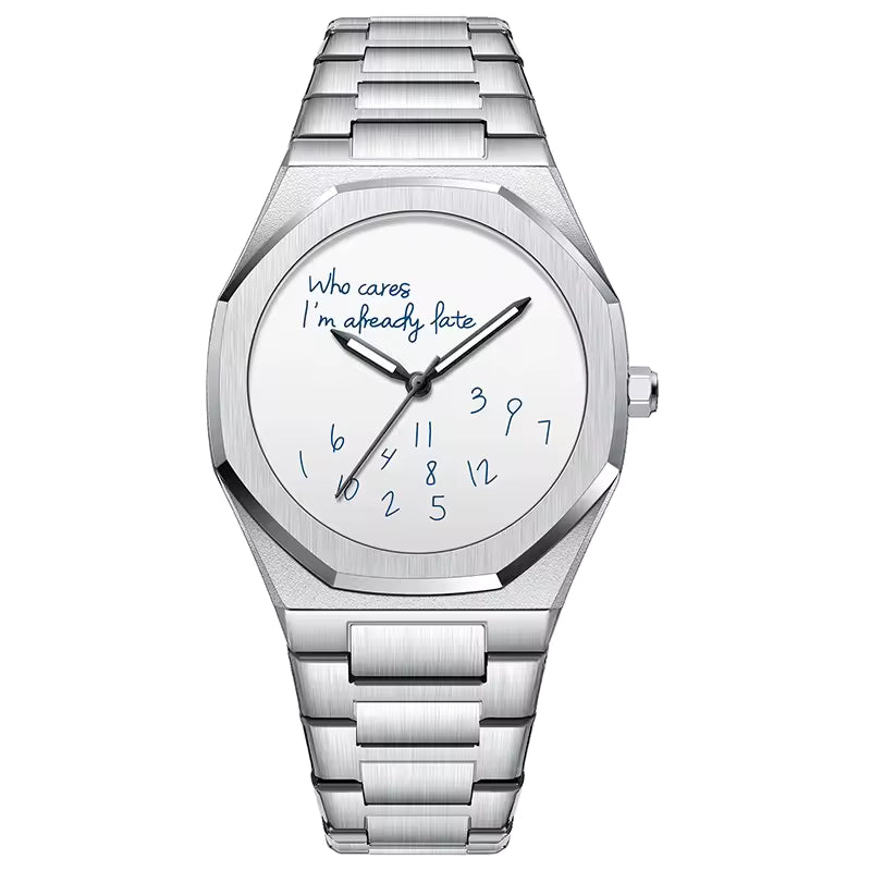 With its handwritten numbers and witty phrase, it's more than a watch—it's a bold statement that celebrates your unique, laid-back personality.
