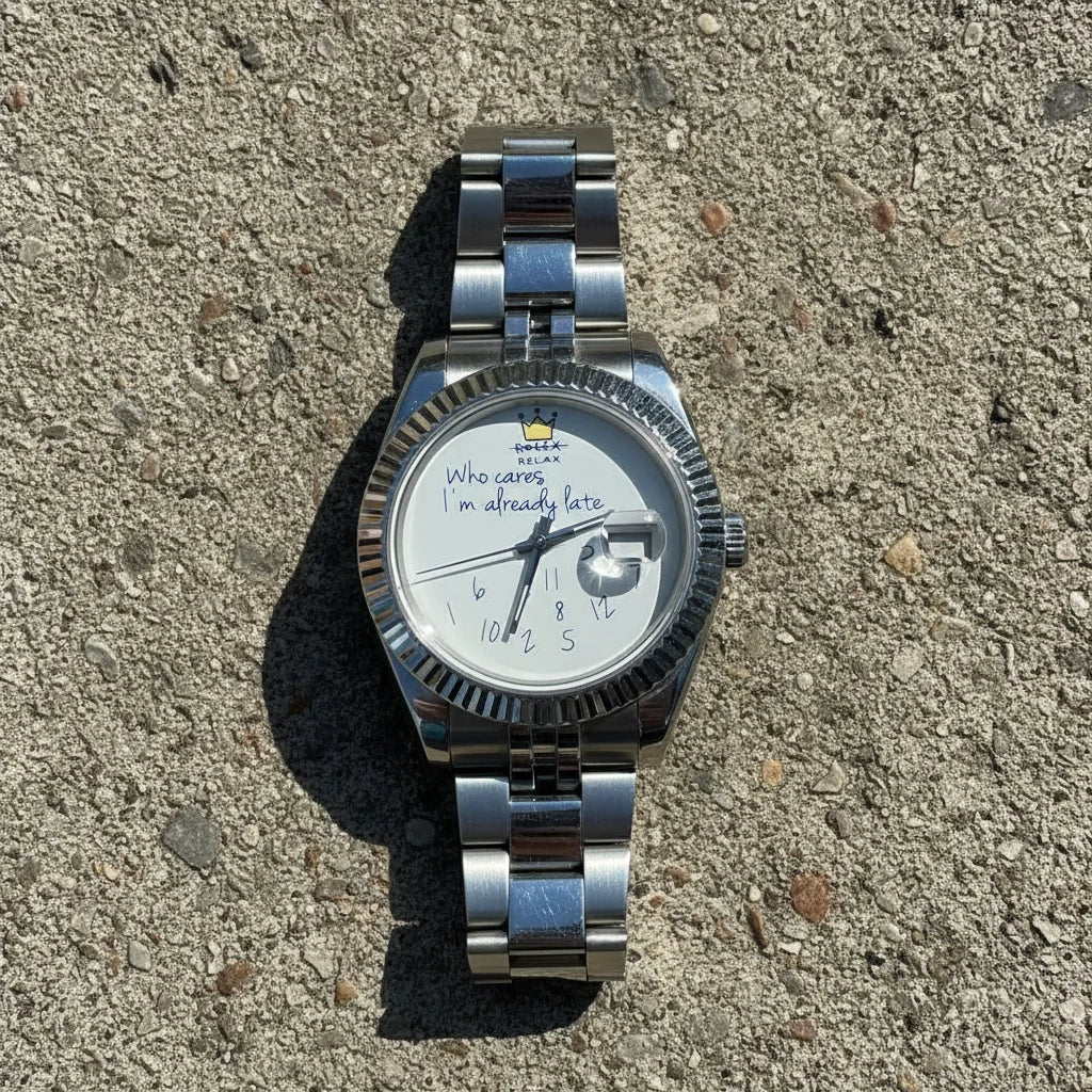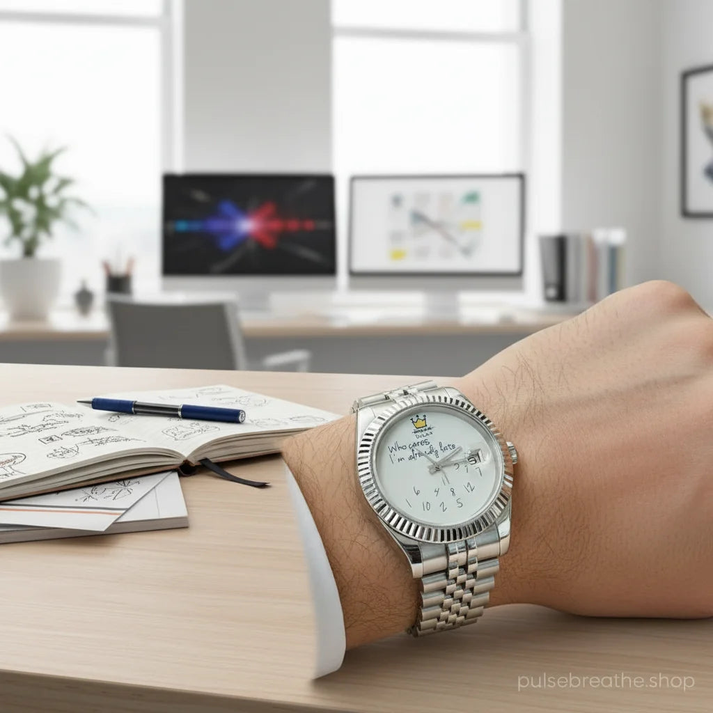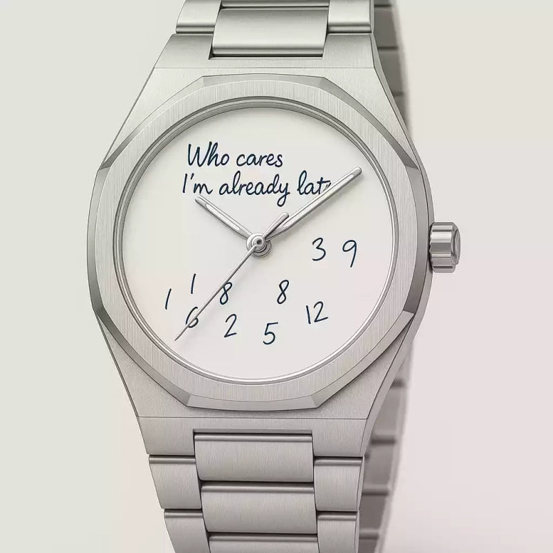 Forget the pressure of punctuality. This watch is your permission slip to slow down, savor moments, and live life on your own terms.